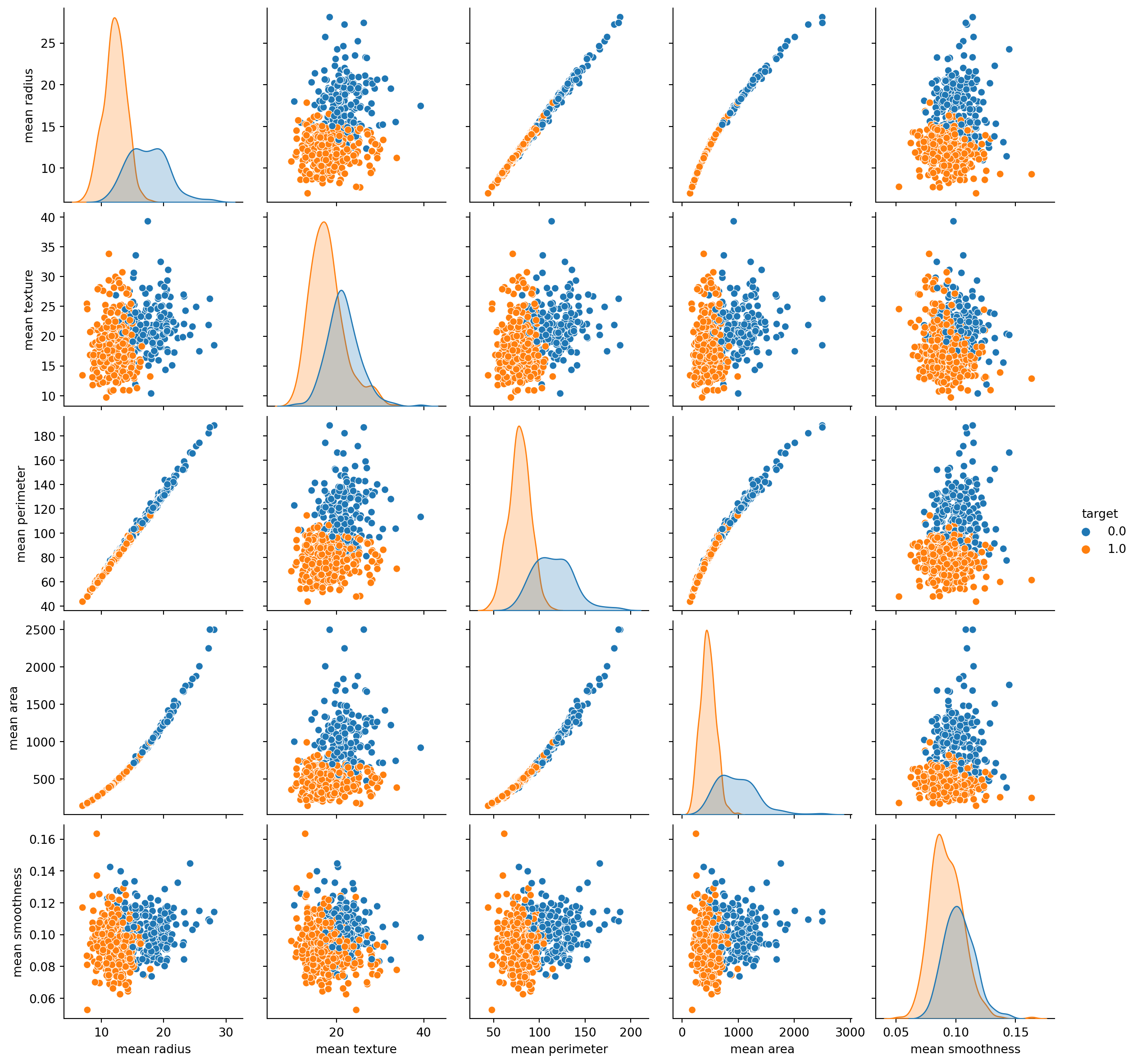 print (data.target_names)['mean radius' 'mean texture' 'mean perimeter' 'mean area'